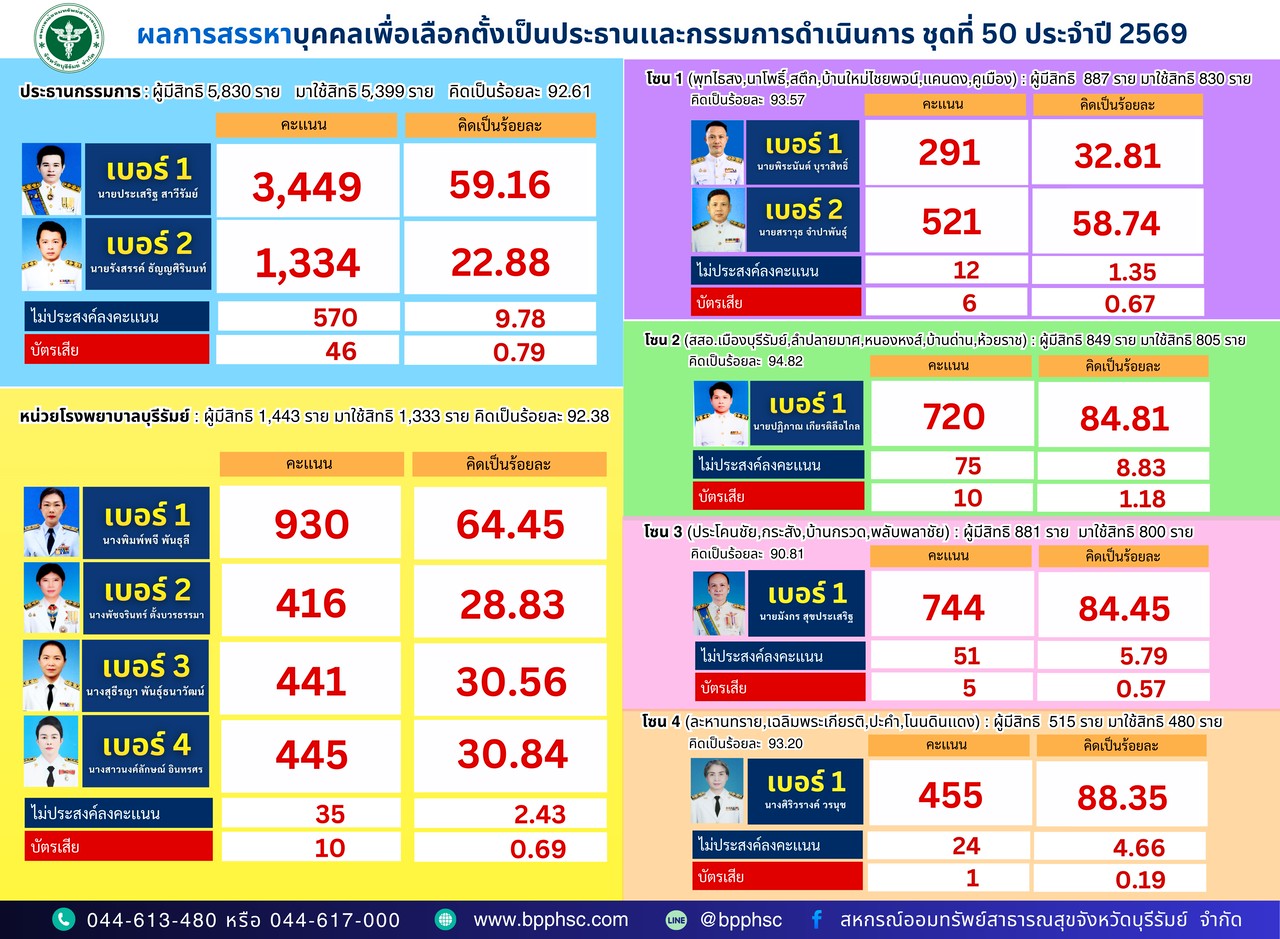 ตามที่สหกรณ์ออมนทรัพย์สาธารณสุขจังหวัดบุรีรัมย์ จำกัด ได้ทำการจัดการสรรหาบุคคลเพื่อเข้ารับการเลือกตั้งเป็นประธานกรรมการและกรรมการดำเนินการสหกรณ์นั้น บัดนี้ ได้ดำเนินการเสร็จสิ้นเรียบร้อย จึงประกาศรายชื่อผู้ได้รับการสรรหาตำแหน่งประธานและกรรมการ ตามประกาศ
