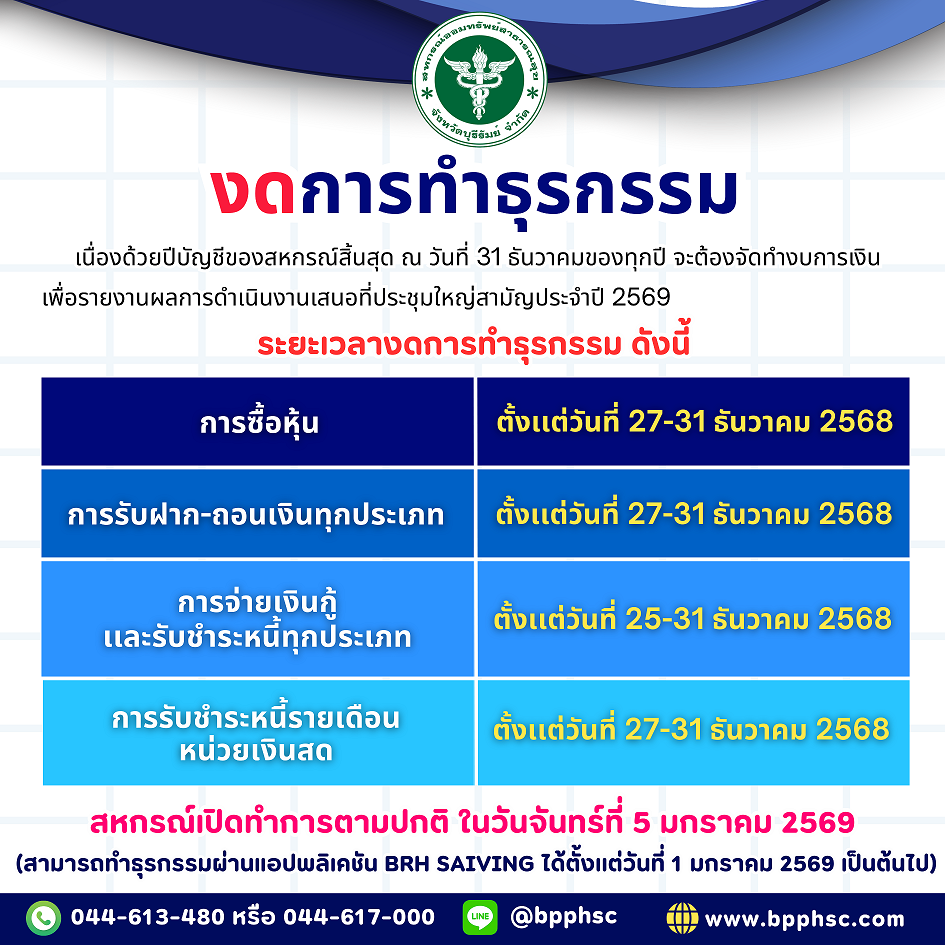 สอบถามได้ที่ ไลน์สหกรณ์ @bpphsc หรือ 044613480